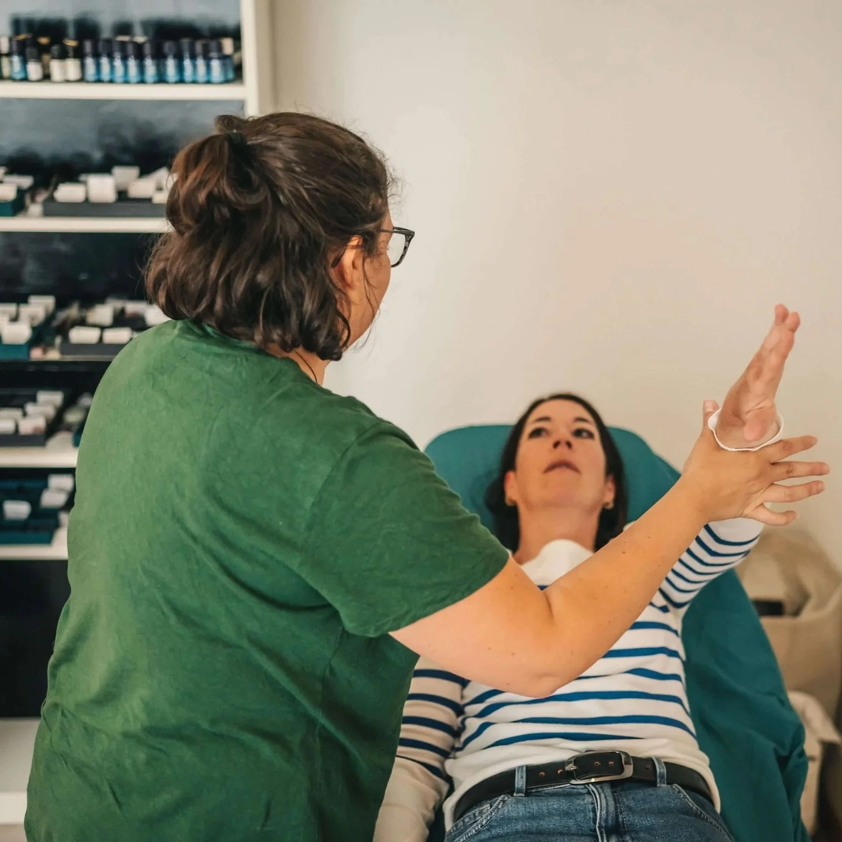 Après avoir parlé de vous et de ce que vous souhaitez changer, nous utiliserons les réponses musculaires de votre bras pour comprendre ce qui vous empêche d’y arriver. Cela peut être :